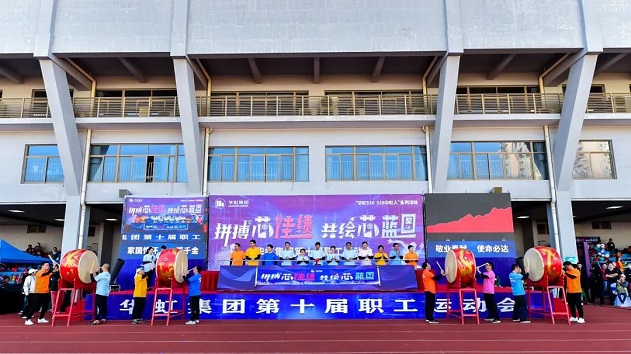 此次運動會開幕儀式環(huán)節(jié)特邀各單位職工代表一起參與,8位鼓手一同擂響大鼓,代表萬名華虹人展現(xiàn)向著年度目標(biāo)沖刺的決心。