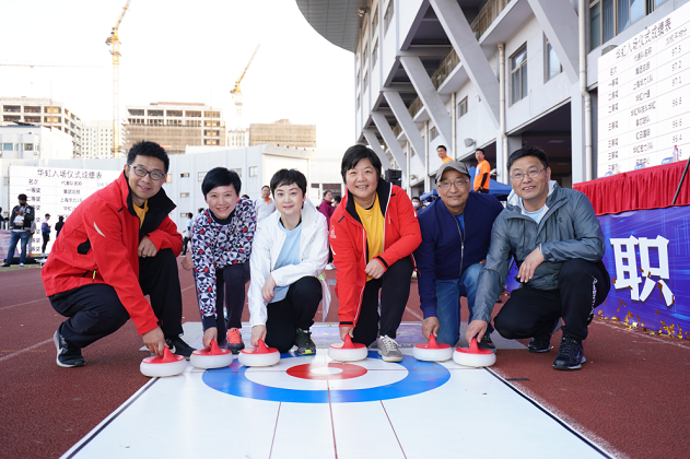 競賽講求團隊默契配合和策略。一片冰“芯”項目是為迎接2022年北京冬奧會特別設(shè)置的旱地冰壺比賽,廣受大家的歡迎。領(lǐng)導(dǎo)嘉賓們現(xiàn)場組成“神秘嘉賓A隊”、“神秘嘉賓B隊”,加入到13支隊伍的淘汰PK賽中,增加了比賽的懸念。經(jīng)過多輪PK,“神秘嘉賓A隊”超強發(fā)揮,以關(guān)鍵一球逆轉(zhuǎn),力壓對手,成功奪冠。上海華力1隊、集團總部隊、華虹宏力2隊分獲項目第二、三、四名。