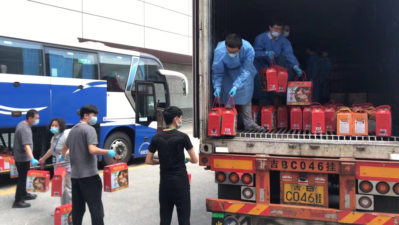 本輪疫情一開始,我們就啟動了生活物資和抗疫物資的儲備。但在3月27日那個夜晚,當數(shù)千人星夜趕回公司時,依然有部分員工的休息條件異常艱苦。在后勤團隊的努力下,這一情況很快得到了改善,睡袋、行軍床、氣墊床、折疊床等寢具不斷升級換代,還有部分員工住進了創(chuàng)新園宿舍和康橋基地宿舍。食品的供應(yīng)也越來越豐富,青團、粽子等美食沒有缺席傳統(tǒng)節(jié)日,西瓜、荔枝等時令水果如約而至,韭菜盒子、康橋小龍蝦等則成為了大家心心念念的網(wǎng)紅美食。供應(yīng)商、客戶和合作伙伴也紛紛送上了蔬菜、日用品、抗疫物資和藥物。集團各級工會為大家提供了零食、衣物和日用品,還為駐廠員工的家屬、居家員工安排了蔬菜禮包。隊伍龐大的志愿者在物資搬運、分發(fā)等工作中發(fā)揮了重要作用,特別是上百名TONY老師,為駐守員工完美解決了“頭等大事”!