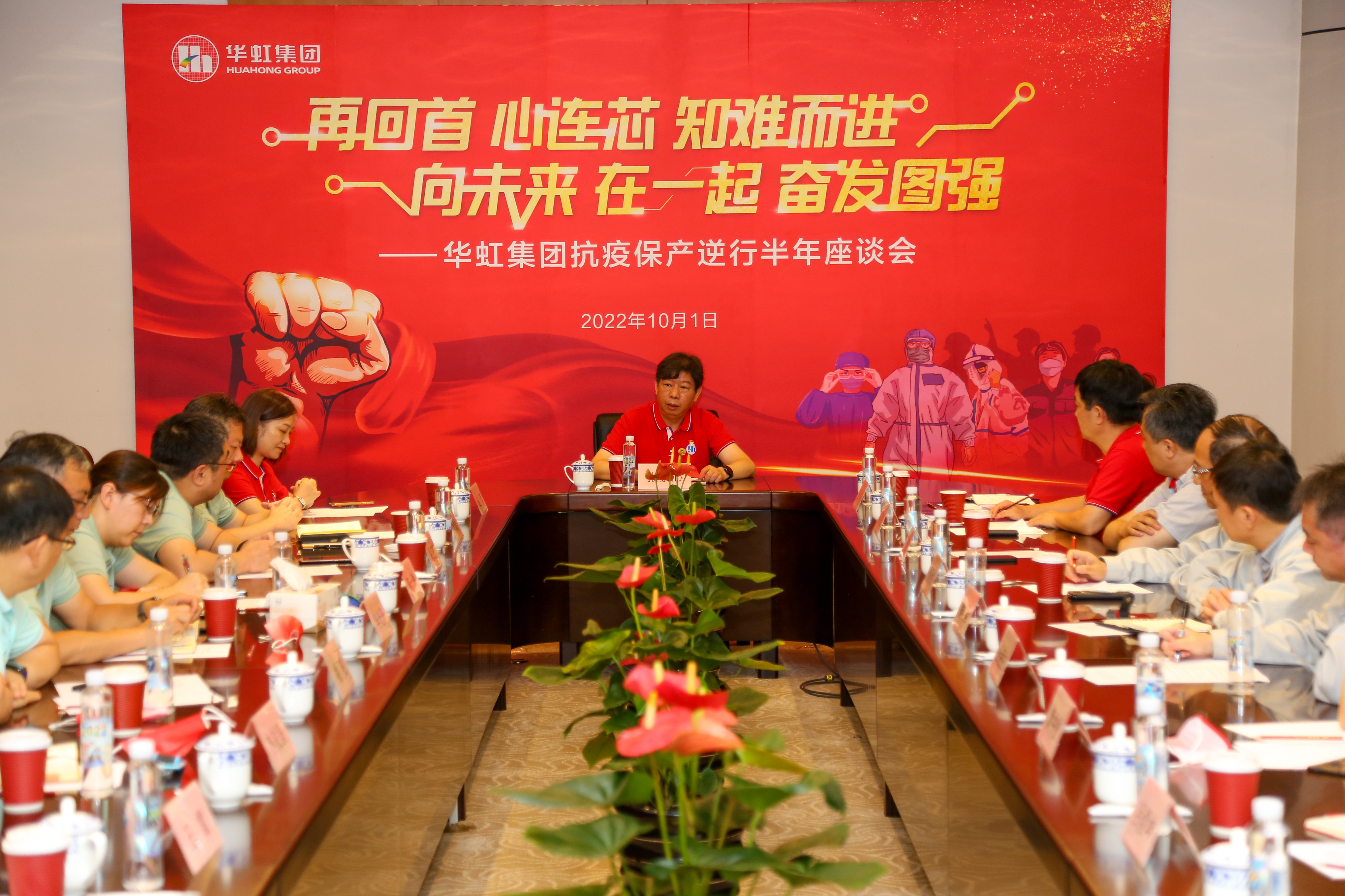 兩大制造平臺(tái)抗疫保產(chǎn)逆行半年座談會(huì)。上午,在華虹集團(tuán)發(fā)源地——華虹一廠召開“再回首,心連芯,知難而進(jìn);向未來,在一起,奮發(fā)圖強(qiáng)”兩大制造平臺(tái)抗疫保產(chǎn)逆行半年座談會(huì)。集團(tuán)領(lǐng)導(dǎo)及兩大制造平臺(tái)的黨政工團(tuán)負(fù)責(zé)人、工廠廠長(zhǎng)齊聚一堂,深情回顧,凝聚共識(shí),激情展望踔厲未來,進(jìn)行了充分交流。